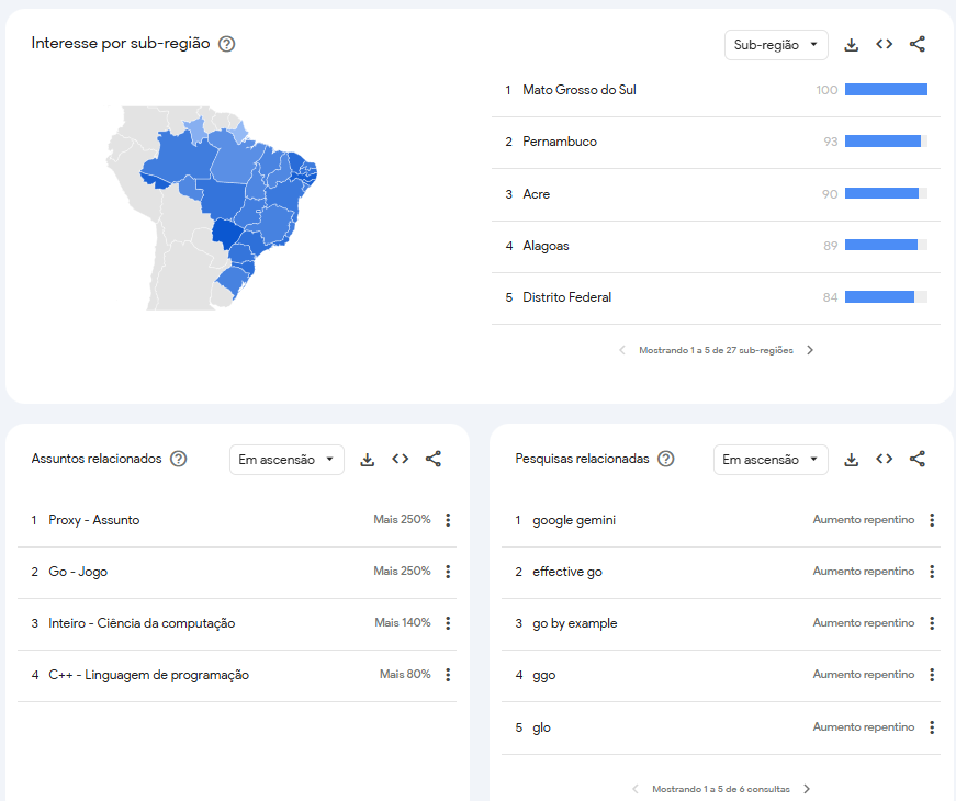 E o motivo é simples: queria uma nova forma, que pudesse ser mais natural para mim em compartilhar conteúdo e percebi também que tem muita gente voltando (ou chegando) em Go agora (além de estar inserido na bolha Go, confesso, também fiz umas pesquisas rápida em redes sociais e sites de trend). Quando você olha para o que as pessoas estão procurando: interfaces, Effective Go, Go by Example, frameworks de API, JWT, etc. O que me deixou um pouco reflexivo, mas me parece que a mensagem é: 2026 começou com vontade de aprendar a base e de aplicação real. Ao longo do ano talvez faça mais sentido para você que tá lendo, mas para mim, que estou inserido na bolha Go, essa é minha percepção, inclusive parte dela acredito que pela facilitação que as IAs dão em constrair, saber a base (e até além da base) vai ajudar muito na hora de utilizar essas ferramentas.